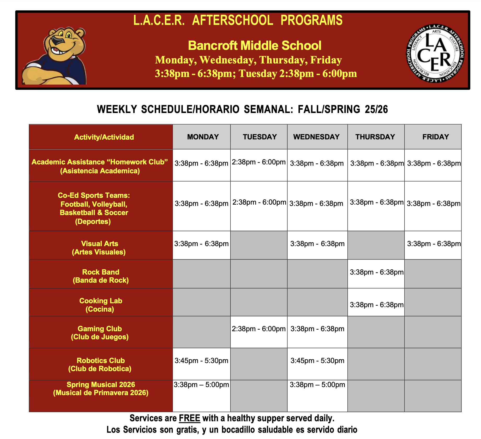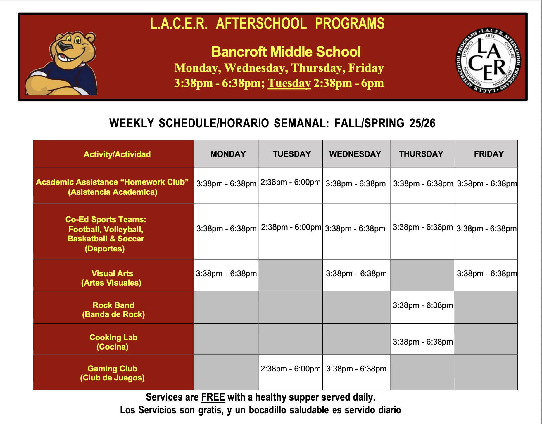 Click to share your feedback or ideas about the LACER program at Bancroft MS.