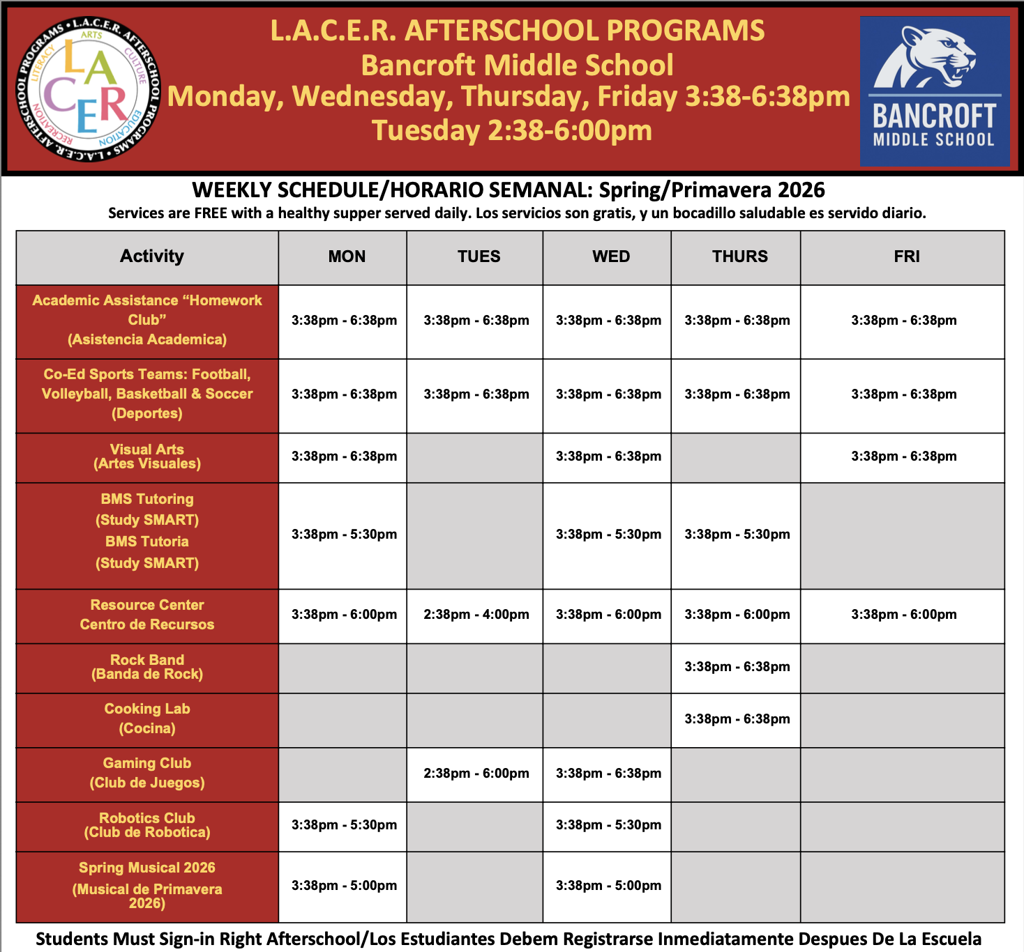 LACER AFTERSCHOOL PROGRAMS
