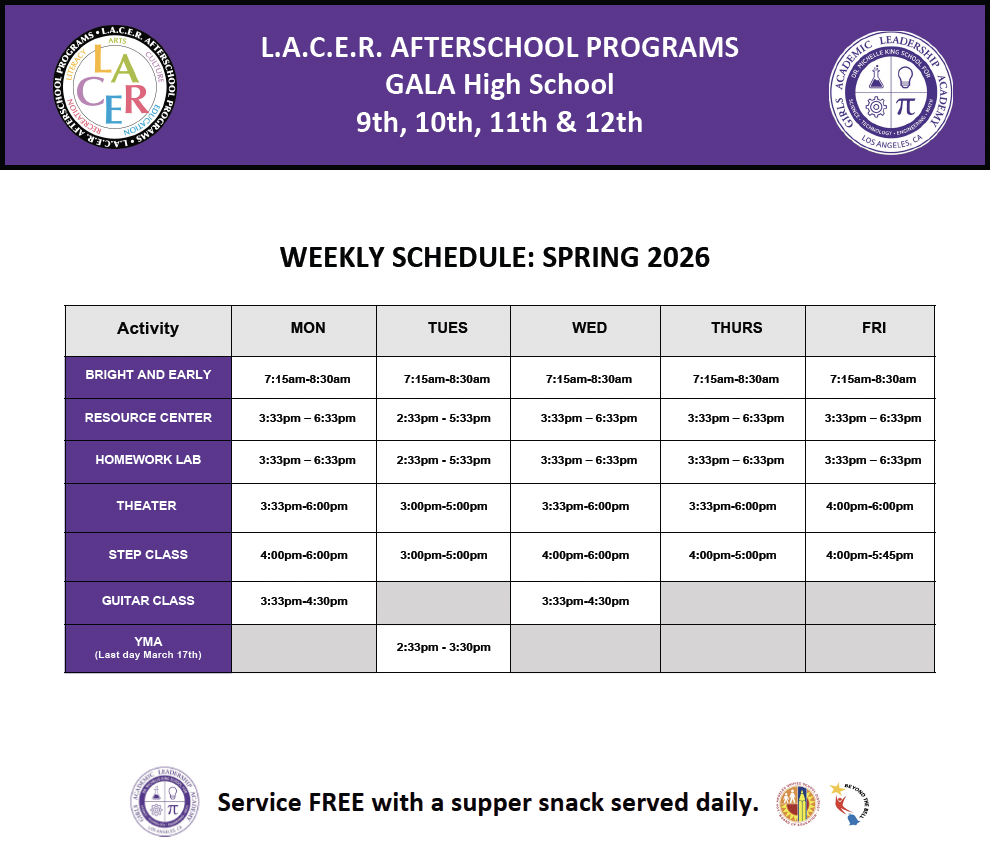 LACER AFTERSCHOOL PROGRAMS