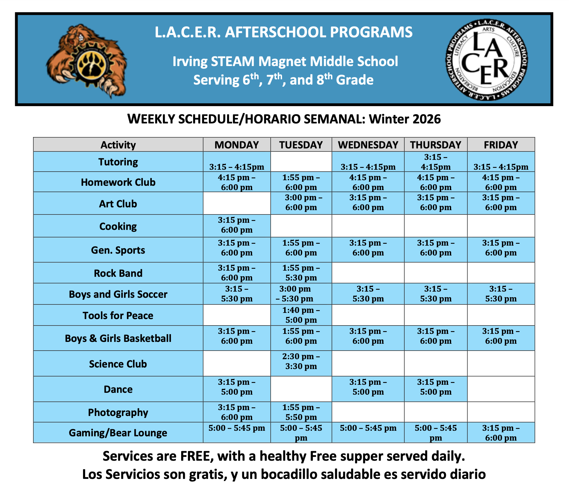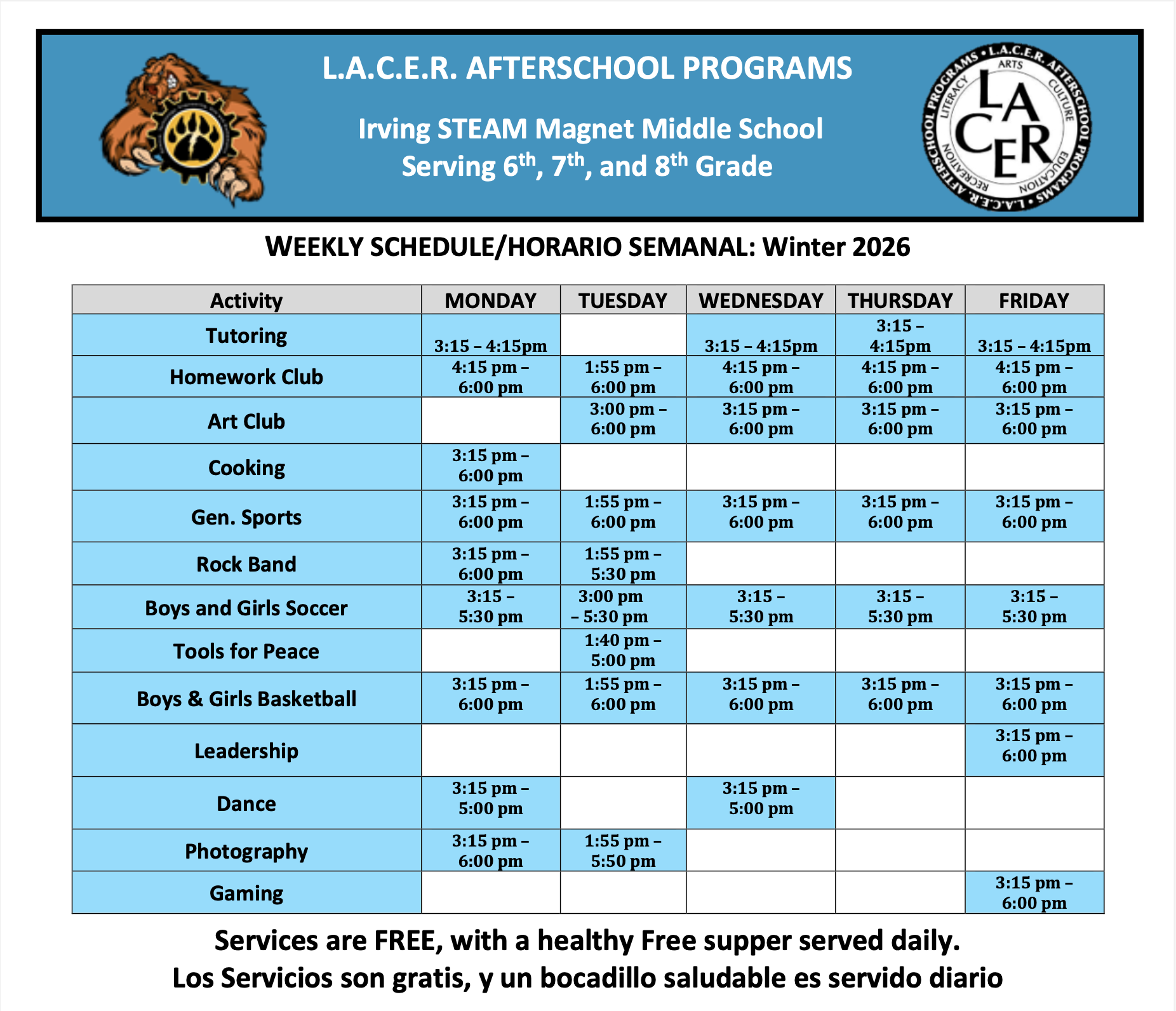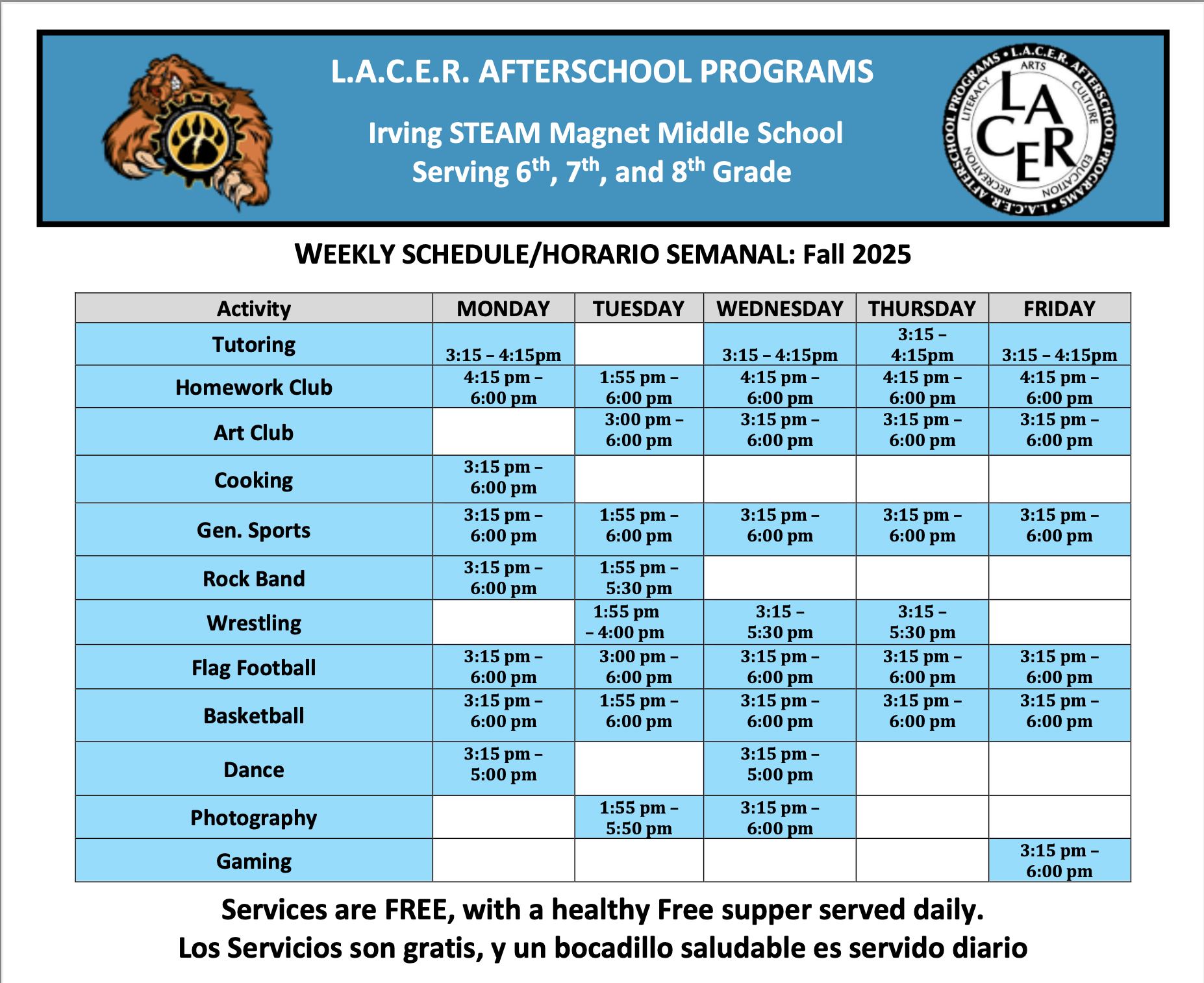 Click to share your feedback or ideas about the LACER program at Irving MS.