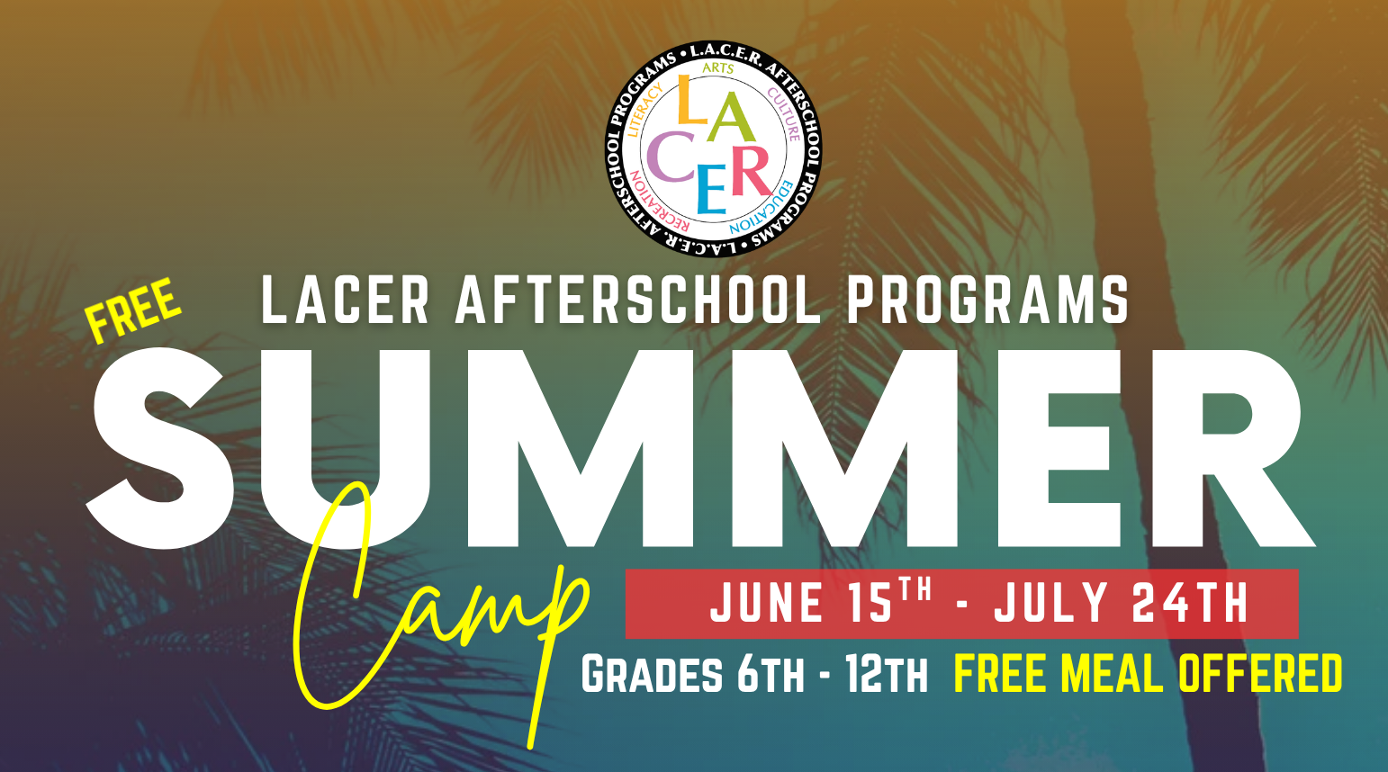 The LACER Summer Enrichment Program will operate from June 15, 2026, through July 24, 2026. Programs will be closed on June 19 and July 3 in observance of Juneteenth and Independence Day, respectively.